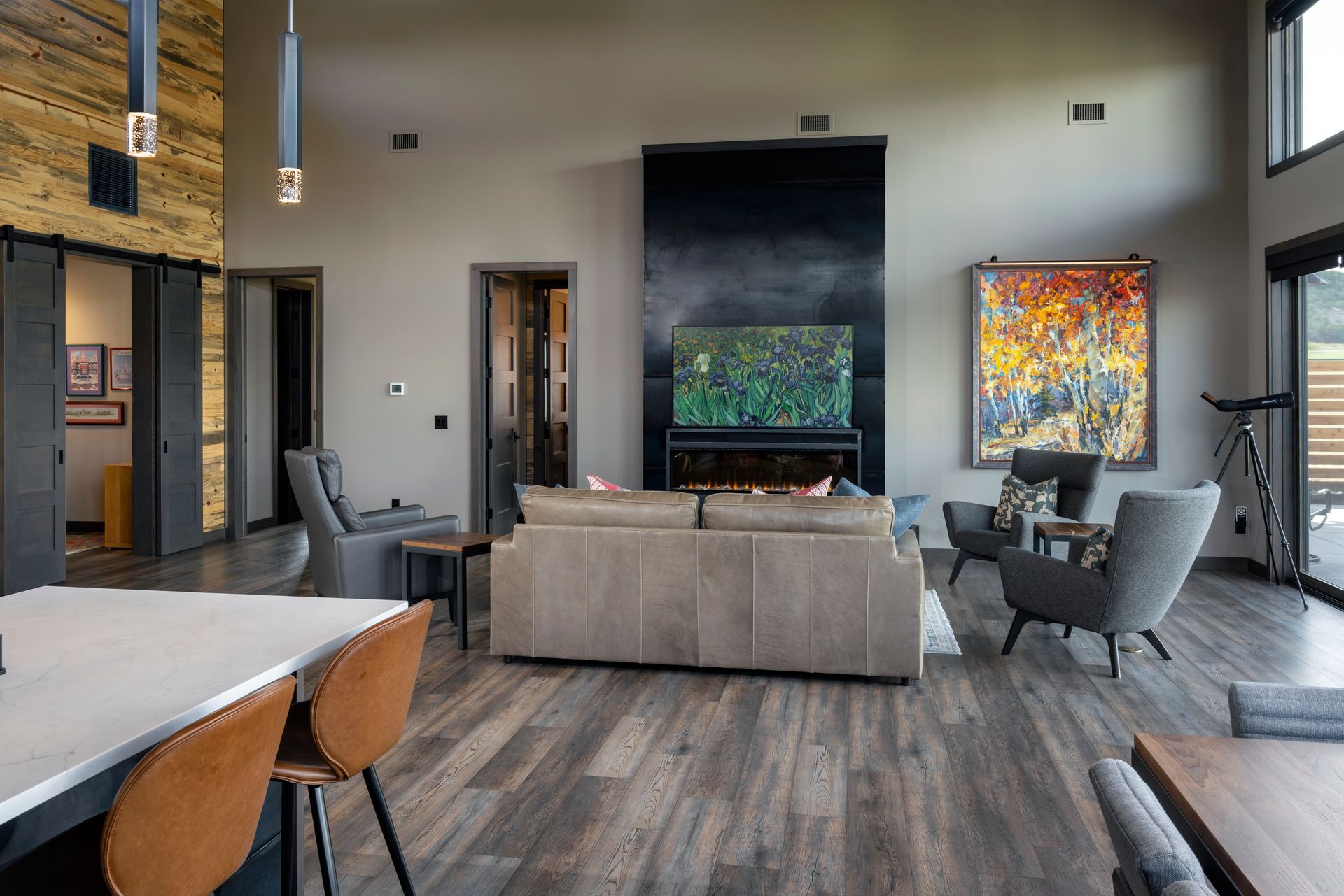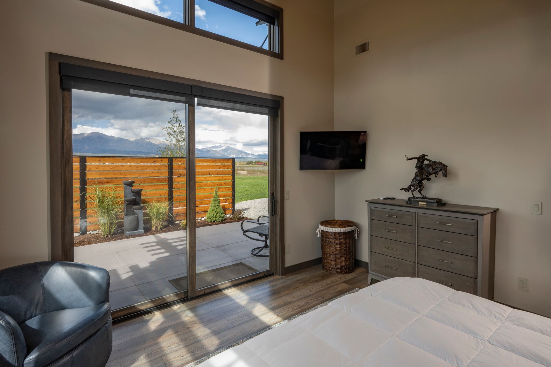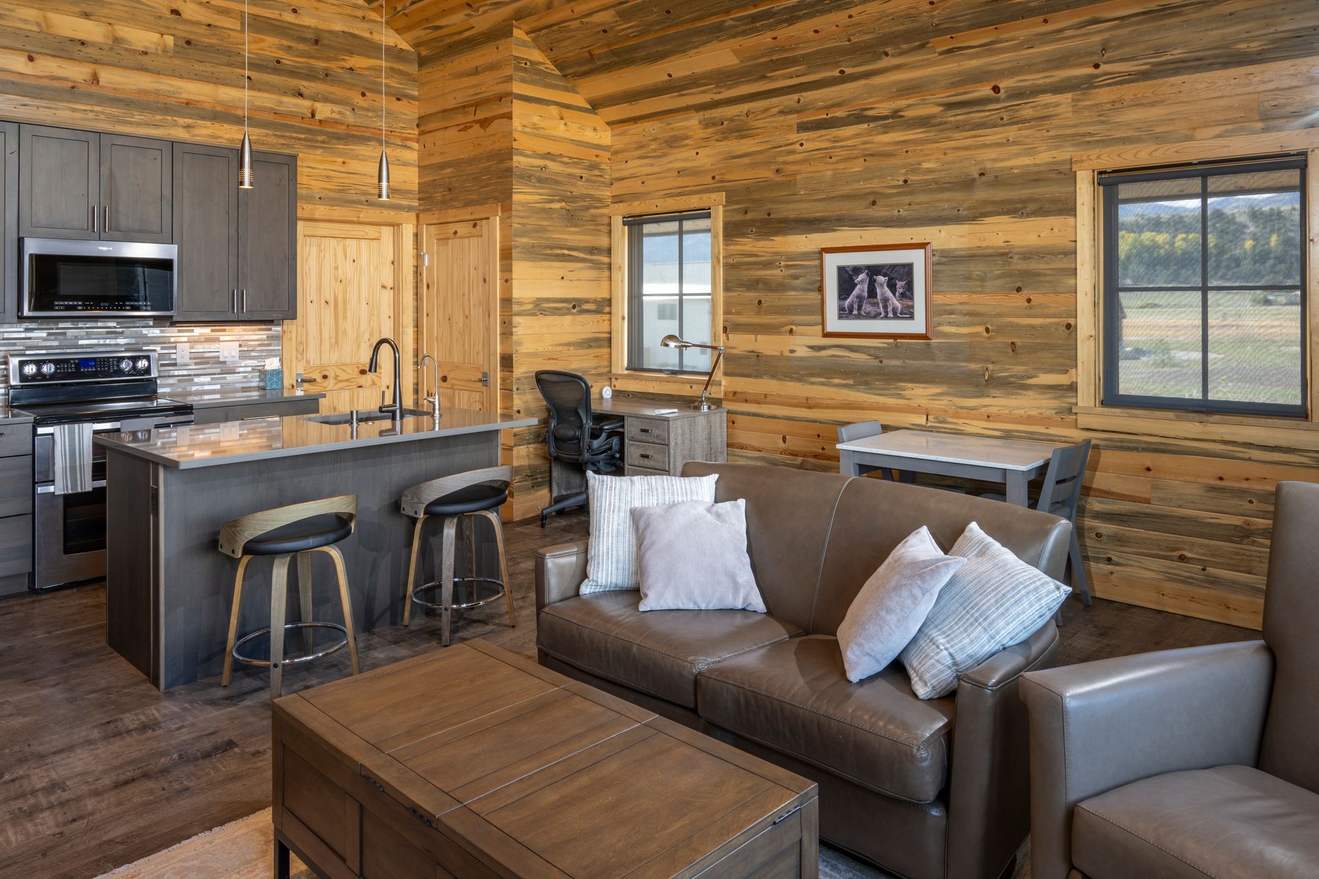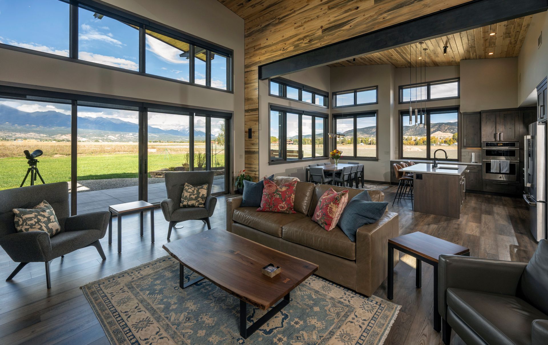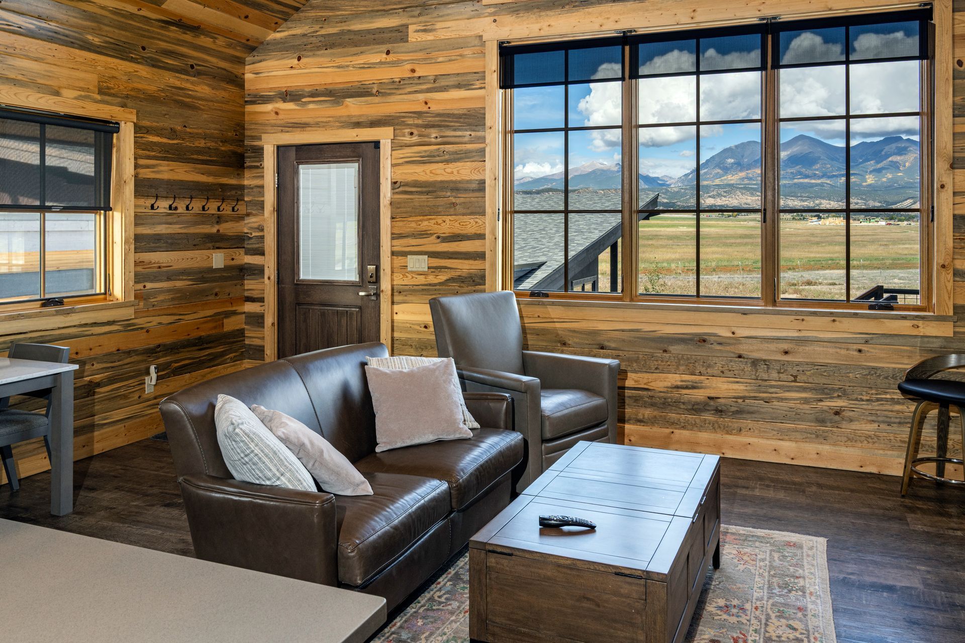 Phase-2 was the construction of the Main House, which commenced construction in 2022. The Main House includes 2 bedrooms, 2.5 bathrooms, and a home office. The large west-facing windows of the Main House have sweeping 180° views of the 14,000’ peaks of the Sawatch Range. The Main House with the “Barn-dominium” were designed to lower the “Carbon-Footprint” of the Owners, with extensive PV solar applications, and all electric mechanical systems.