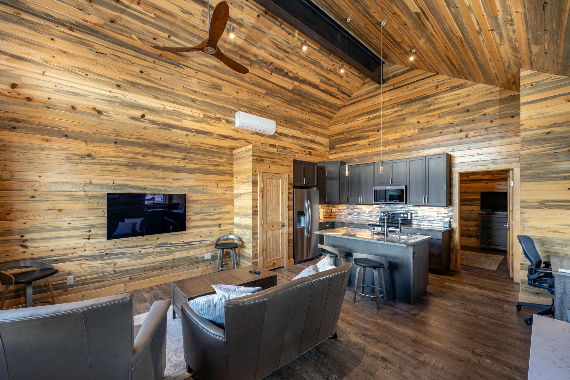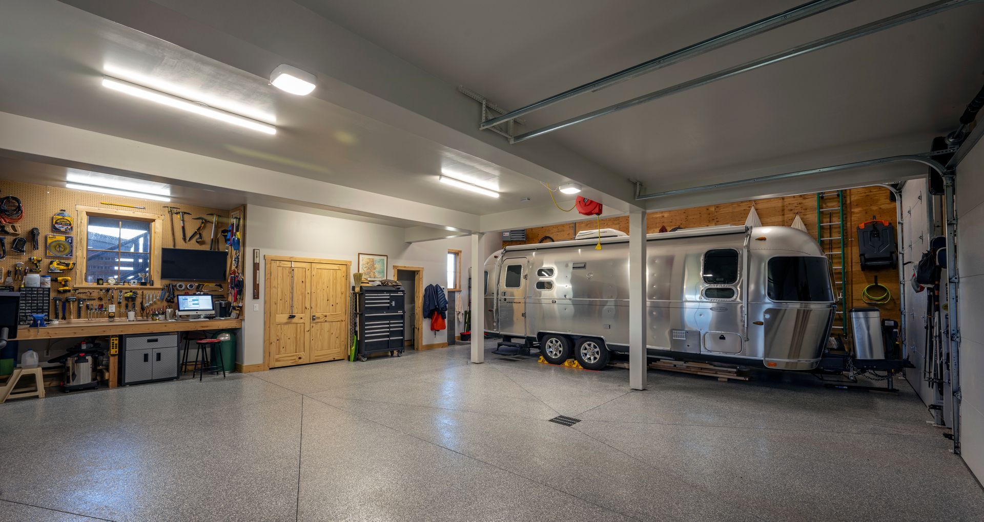 This project was completed in 2-Phases. Phase-1was the construction of a ”Barn-dominium”, with a 1 bedroom, 1 bathroom apartment, over a 3-car garage that was completed in 2021. The Owners utilized the “Barn-dominium” as a second home for a few years, and a place to keep their Airstream travel trailer.